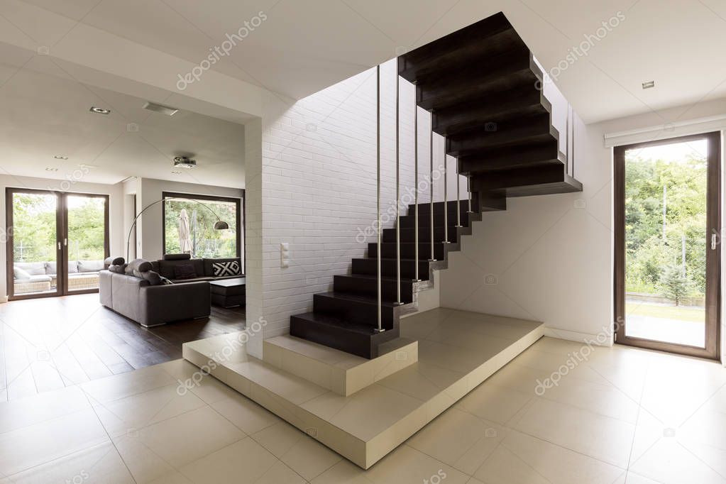 Treppe Im Wohnzimmer In Der Zeitgenössischen Villa ...