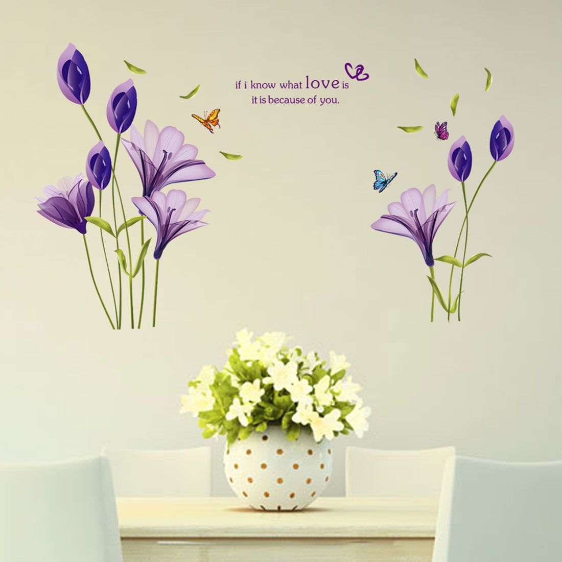Wandtattoo Blume auf lila Wand. Dekorative Gestaltung von ...